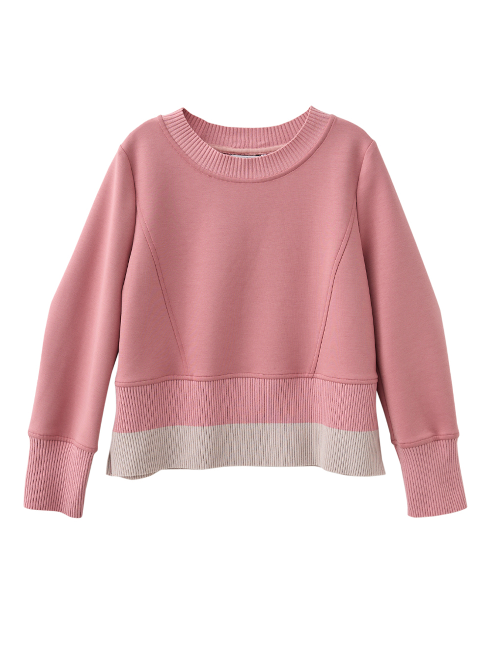 彈性布料與配色立體羅文拼接, 營造層次豐富的雙色下擺夏果, 微寬短版剪裁輕鬆搭出日常時尚風格。