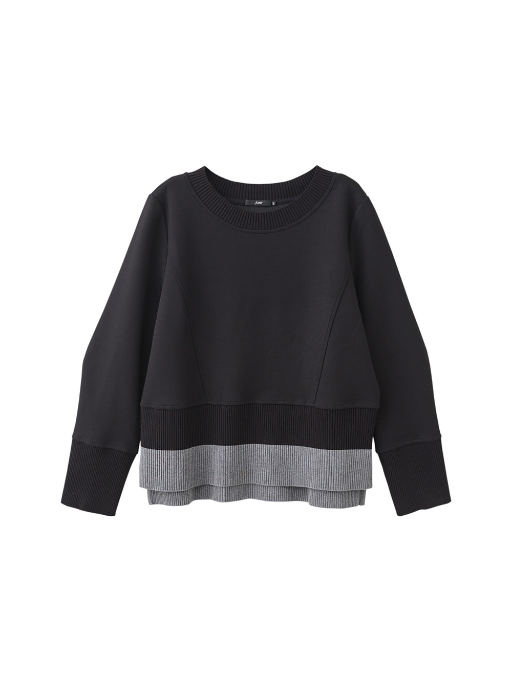 彈性布料與配色立體羅文拼接, 營造層次豐富的雙色下擺夏果, 微寬短版剪裁輕鬆搭出日常時尚風格。