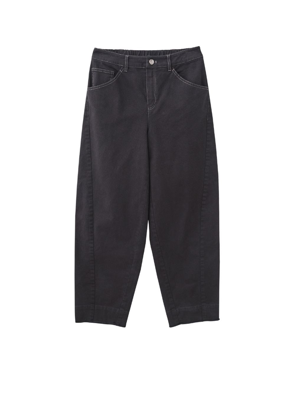 巧妙的雙側剪接線條設計, 加強腿部視覺延伸效果, 微彎曲線不貼腿輕鬆舒適, 彈性單寧布讓活動更自在。