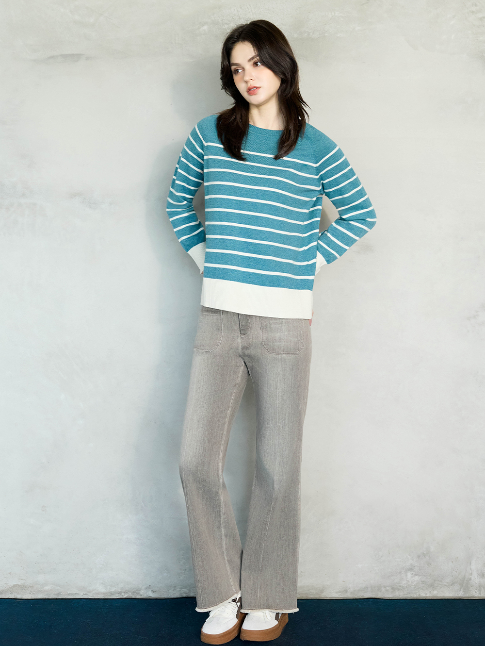 一穿就能拉長腿部比例的微喇叭褲, 內裡輕磨毛處理, 觸感柔和溫暖不厚重, 秋冬換季也能舒適穿搭。