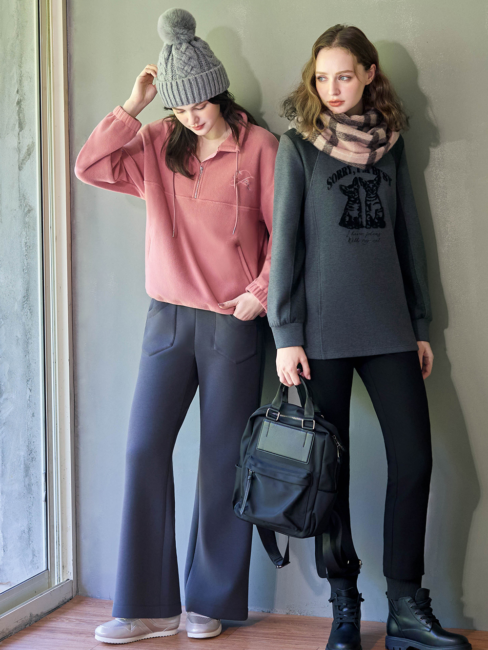 特選內磨毛面料, 溫暖親膚, 舒適彈性讓行動零束縛, 前側雙口帶設計兼具實用性, 鬆緊腰頭穿脫更輕鬆方便。