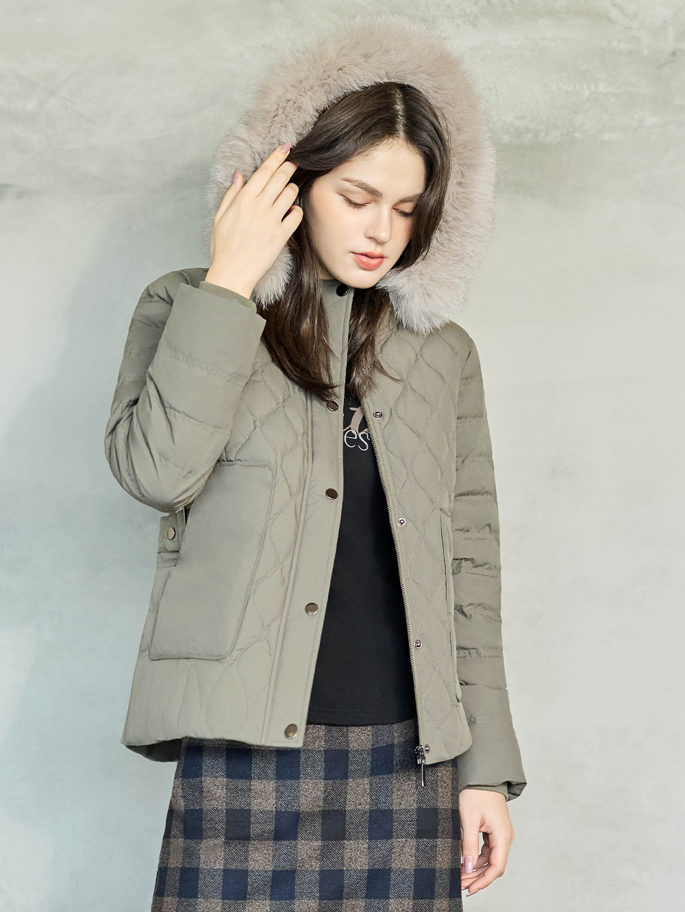 溫暖與高級兼具的冬日羽絨外套, 立體菱格絎逢設計, 顯瘦俐落, 高密度防風布料與羽絨內層, 寒冷季節也可輕盈保暖。