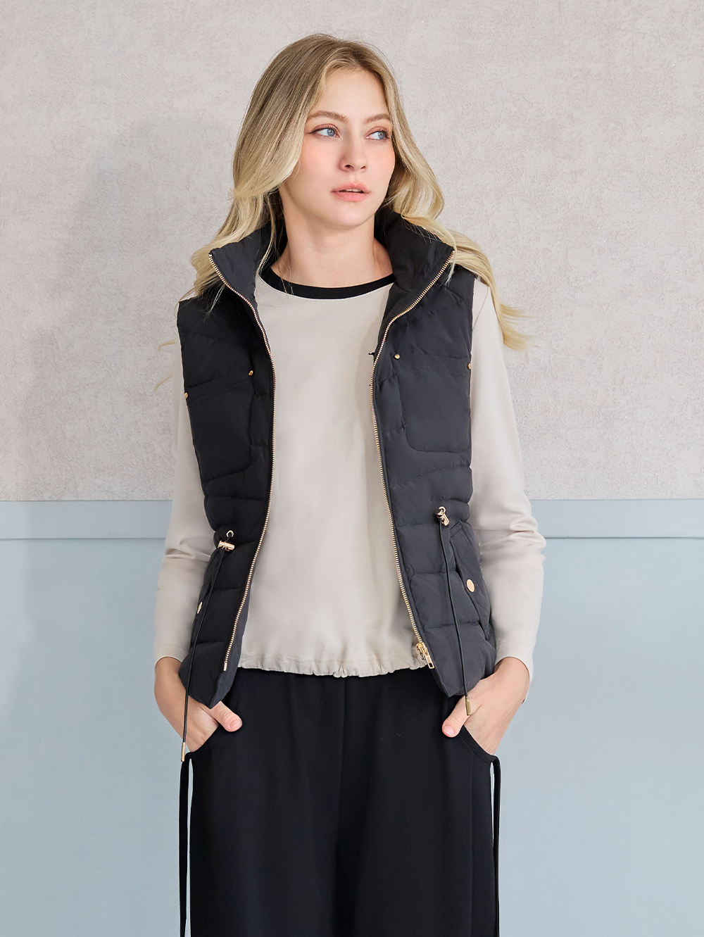 輕盈鴨絨填充, 可調整抽腰設計, 修飾身形更顯俐落。活動式帽子可拆, 隨心搭配滿足不同穿搭需求。