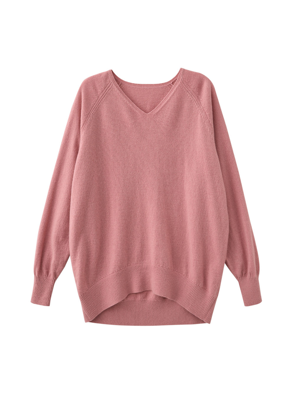 以Csahmere羊絨混紡打造親膚溫暖的質感觸感, V領修飾臉型與頸部線條, 前短後長的版型巧妙拉長腿部比例, 輕鬆穿出隨興的質感日常。