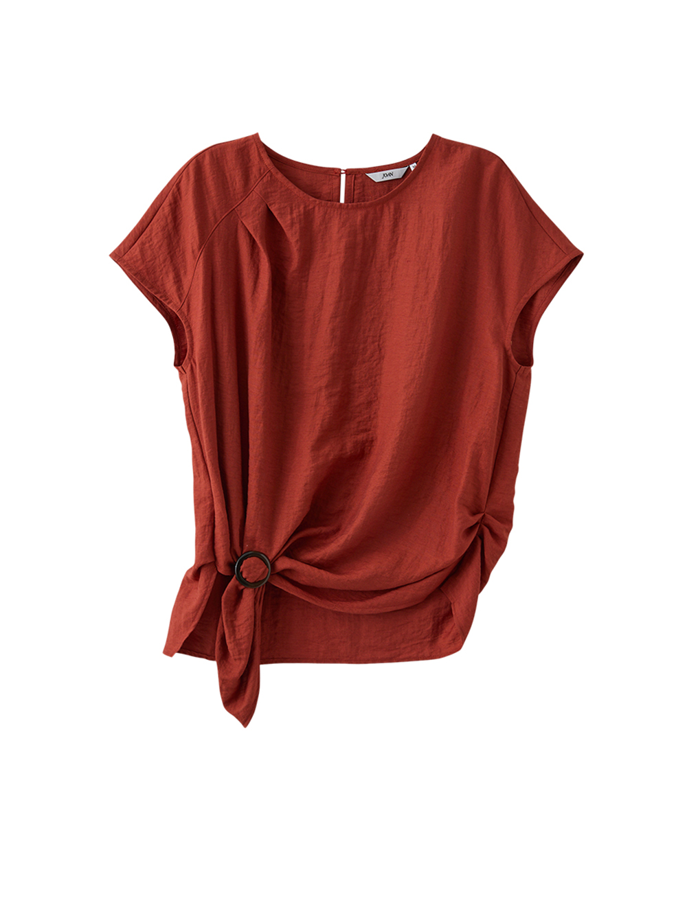 JOAN藝術印花側綁結輕透上衣