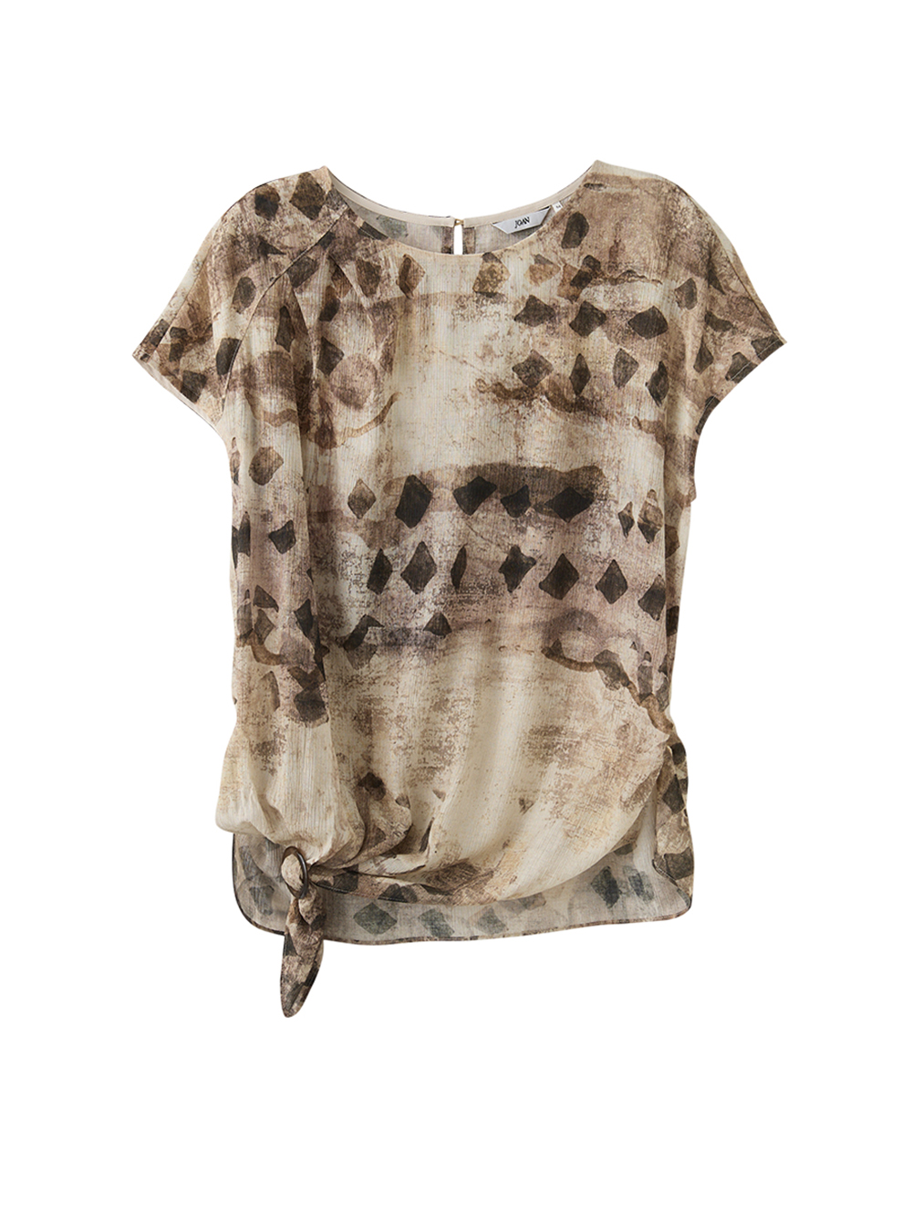 JOAN藝術印花側綁結輕透上衣