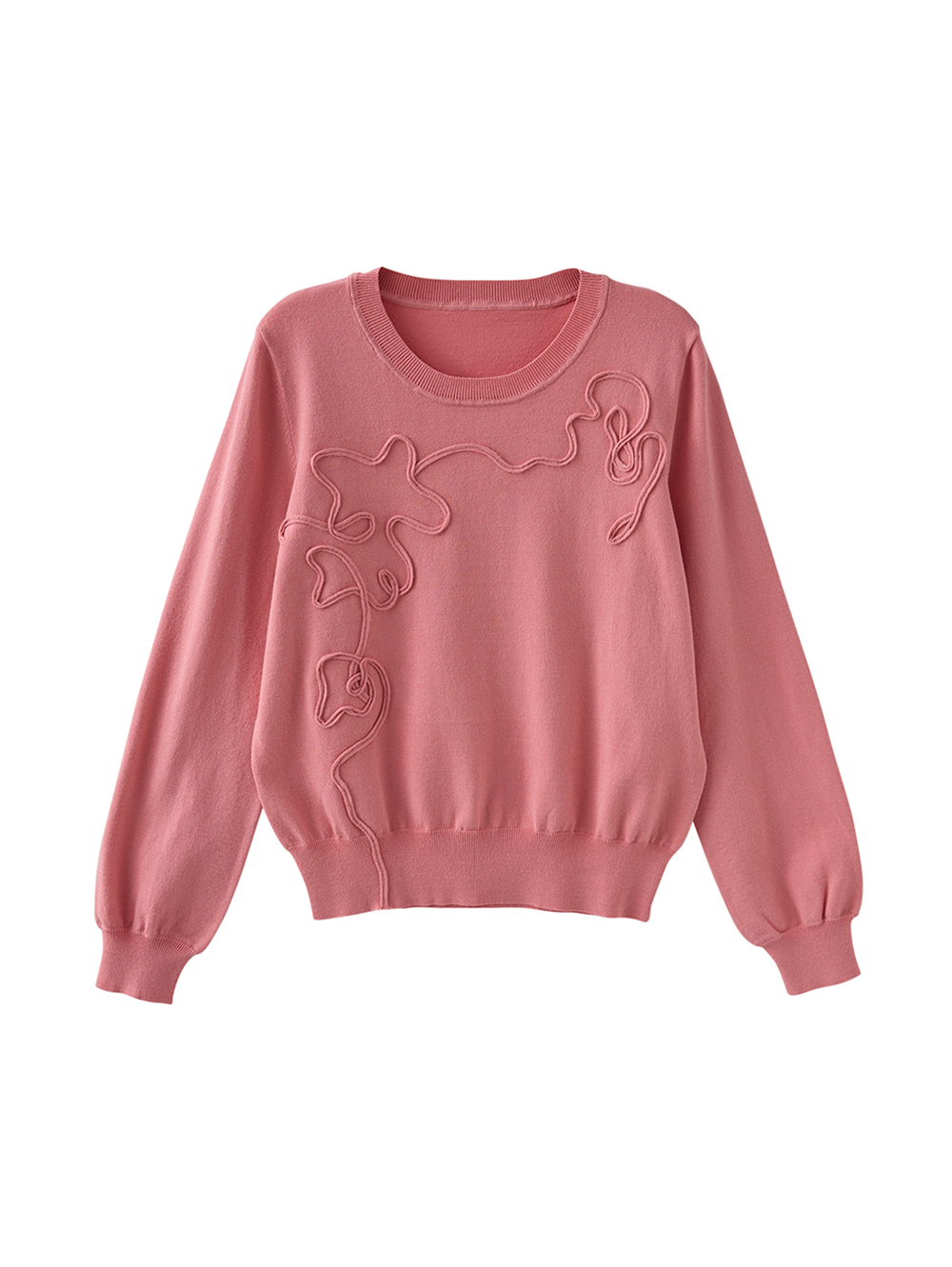 以細緻立體線勾勒出花朵輪廓, 像手繪般自然流動, 低調充滿設計感。 柔軟針織材質, 親膚舒適不刺癢。