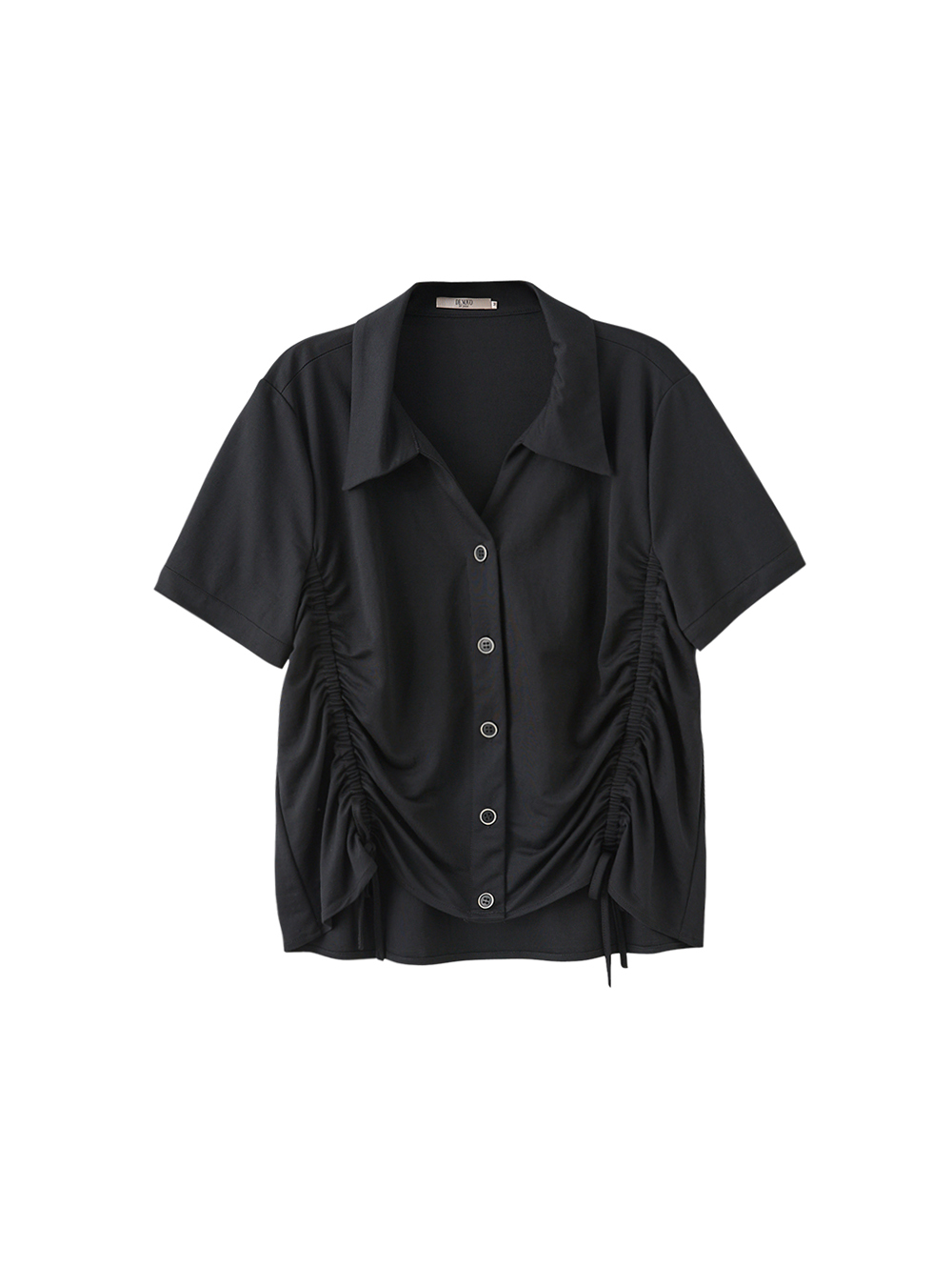將經典襯衫注入設計感細節, 以側邊抽繩與抓皺剪裁, 打造可調整的立體輪廓。