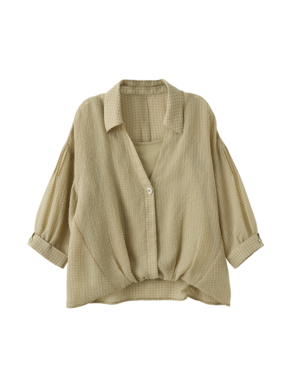 輕透壓紋面料打造的寬版襯衫上衣, 呈現自然柔和的紋理質感, 為日常穿搭增添層次細節。