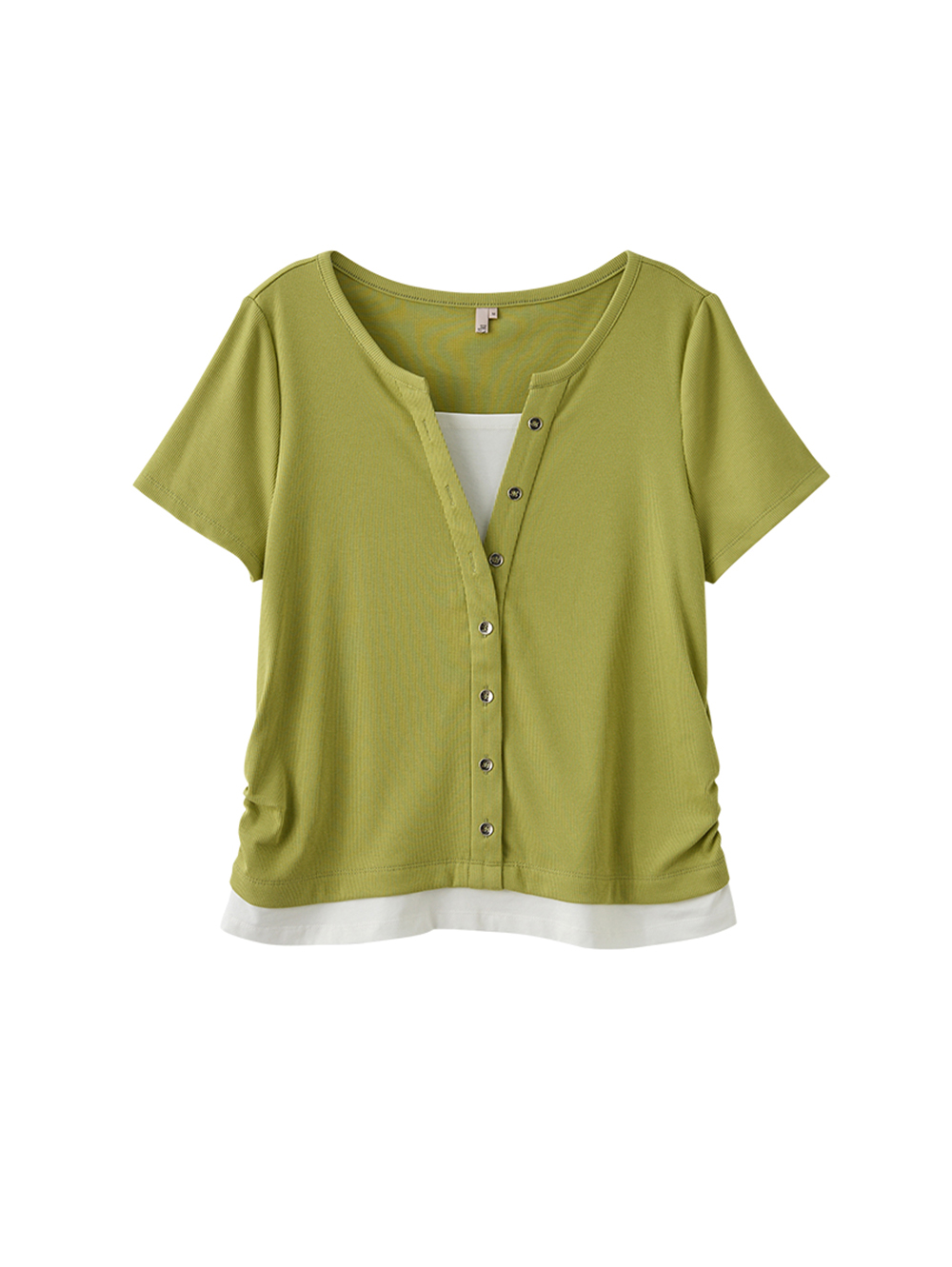 DENOVO輕膚坑條假兩件短袖上衣
