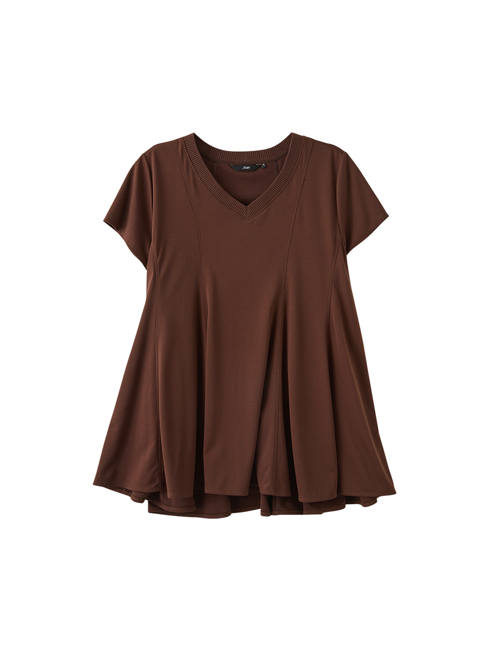 高彈力絲光感面料, 穿著舒適輕盈, 下擺傘狀設計, 利用自然垂墜感修飾腰腹線條, 打造不貼身卻顯瘦的視覺效果。