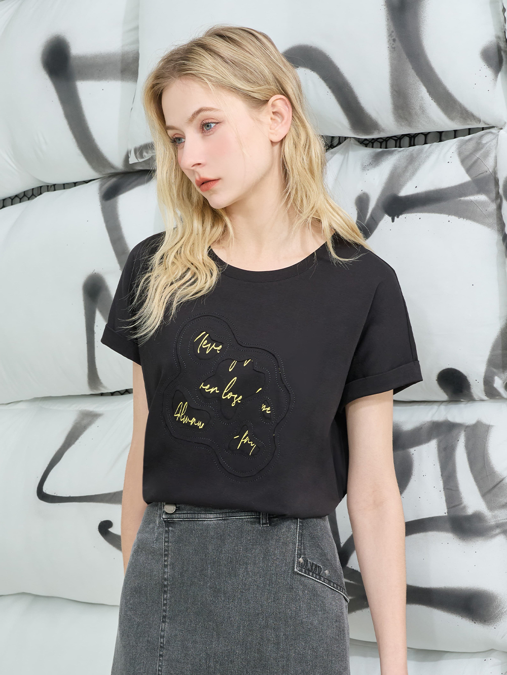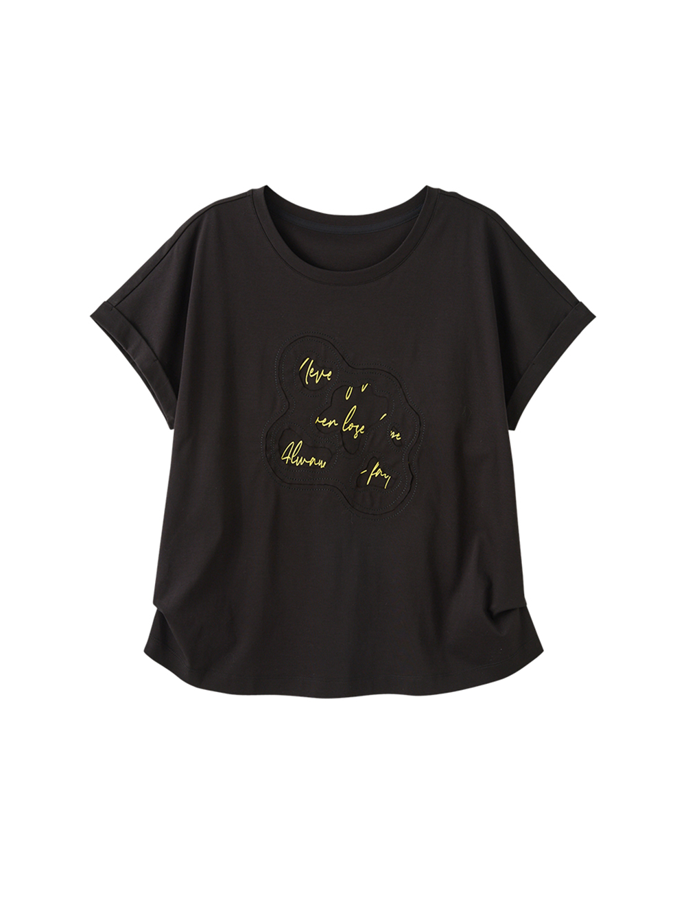 胸前立體貼布感設計, 搭配跳色文字, 低調卻不單調, 讓日常穿搭多一點個性。