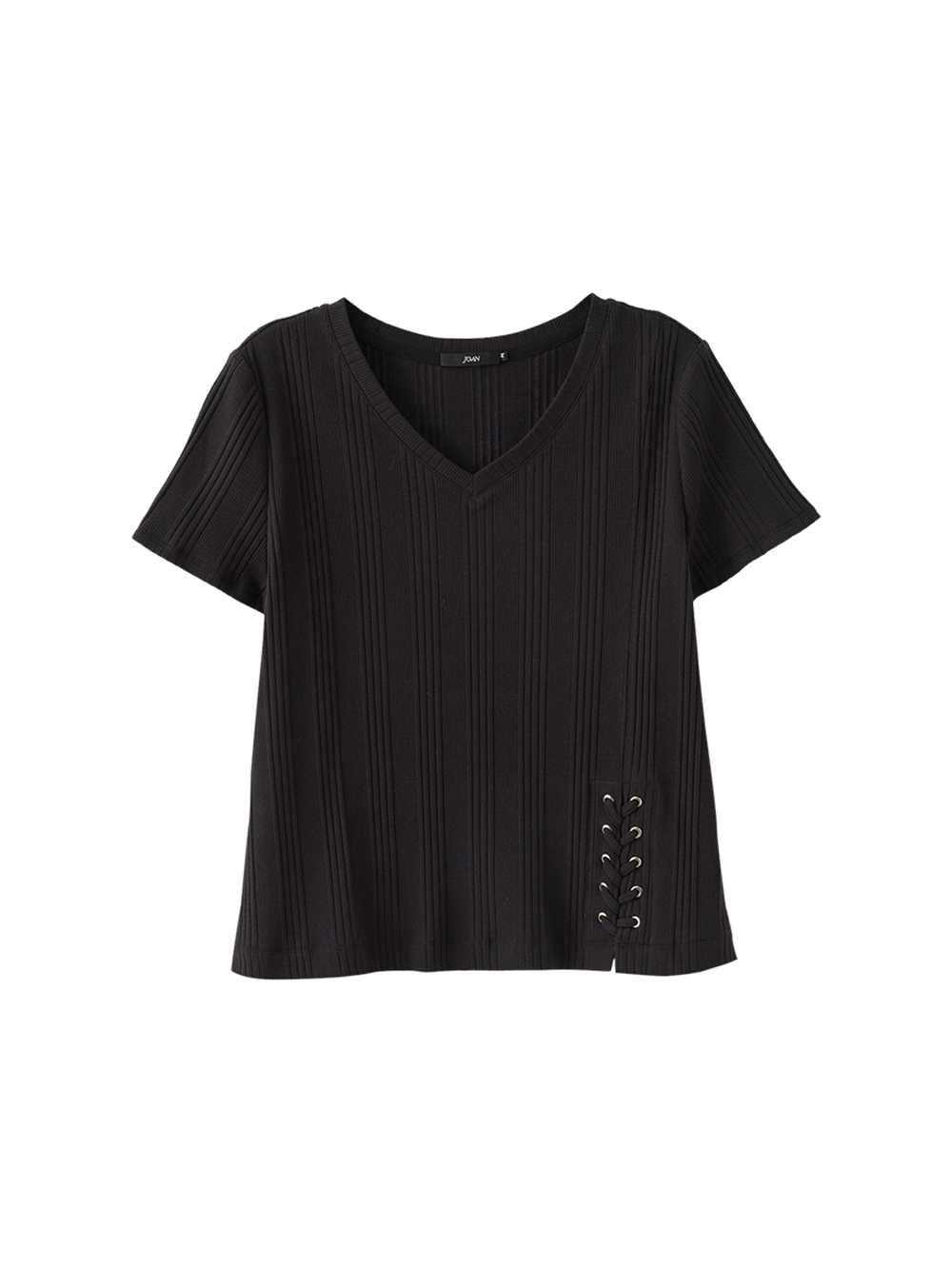 DENOVO側雞眼綁帶造型坑條V領T恤