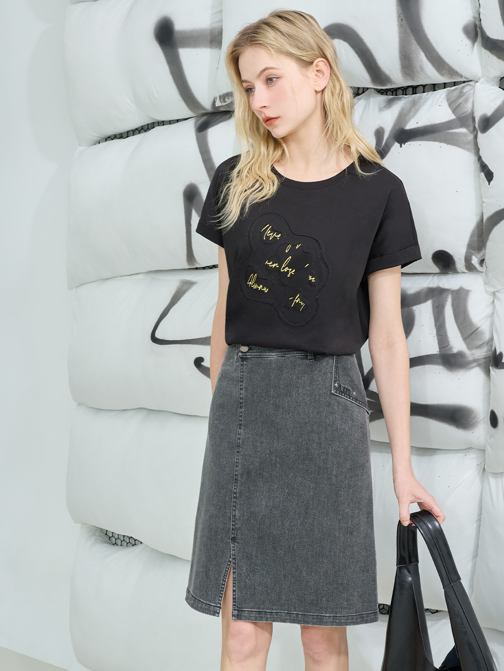 DENOVO側扣設計丹寧中長裙