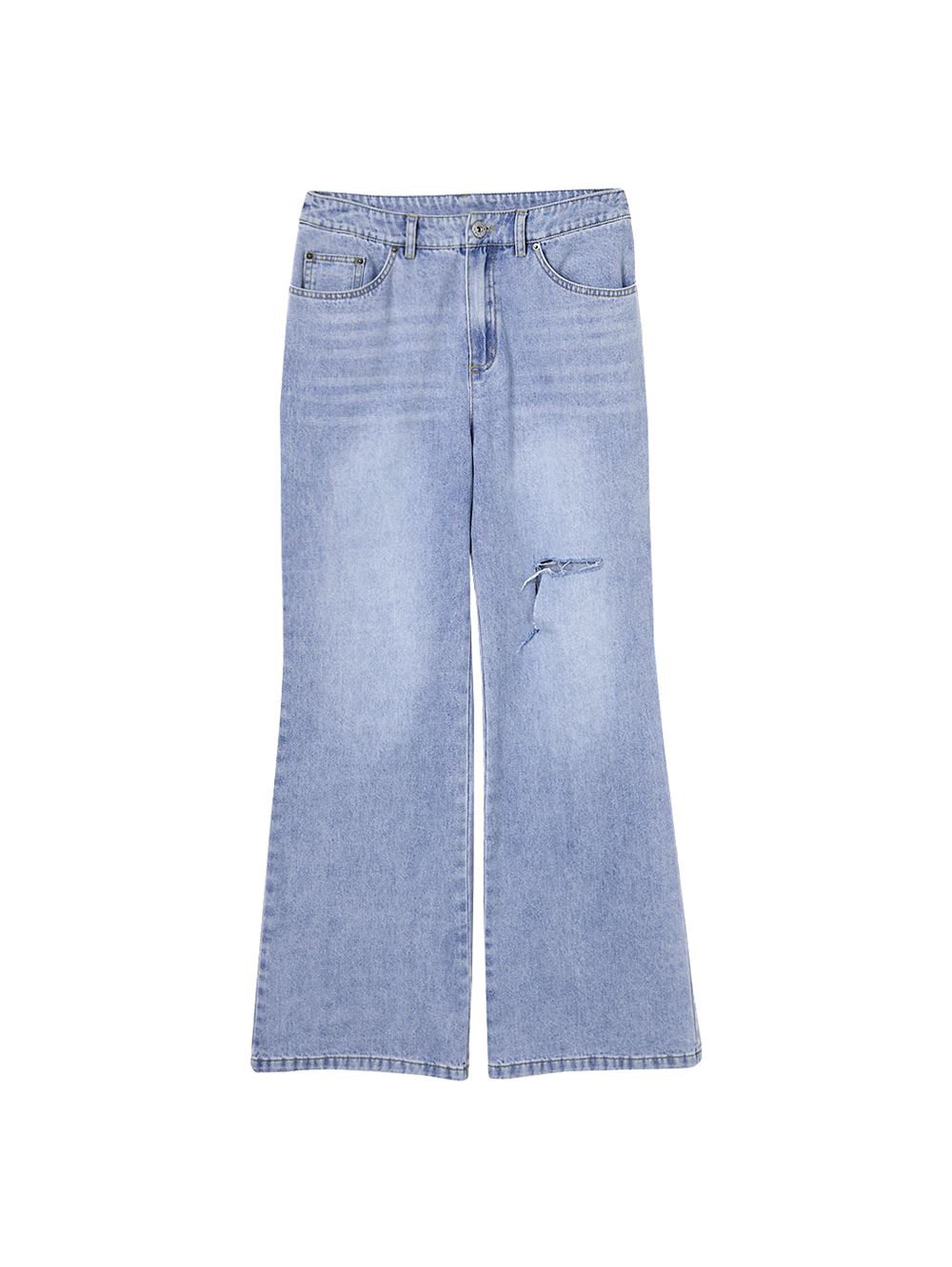 DENOVO輕磨毛彈性修身牛仔喇叭褲