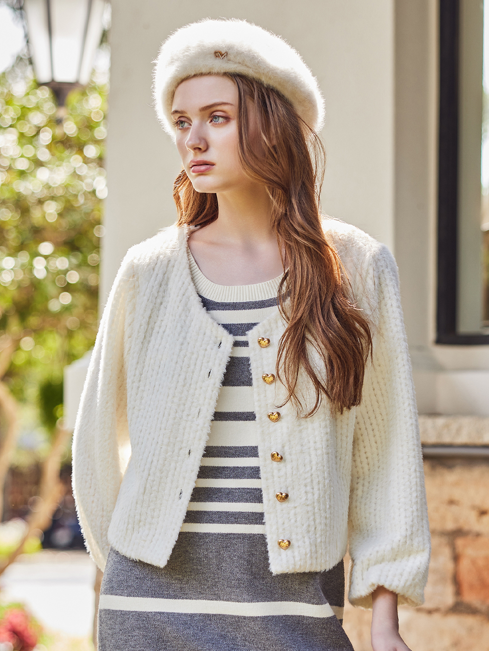 *可愛金屬愛心釦 *柔軟親膚毛毛面料 *日常百搭款 *可當上衣或是外套穿搭