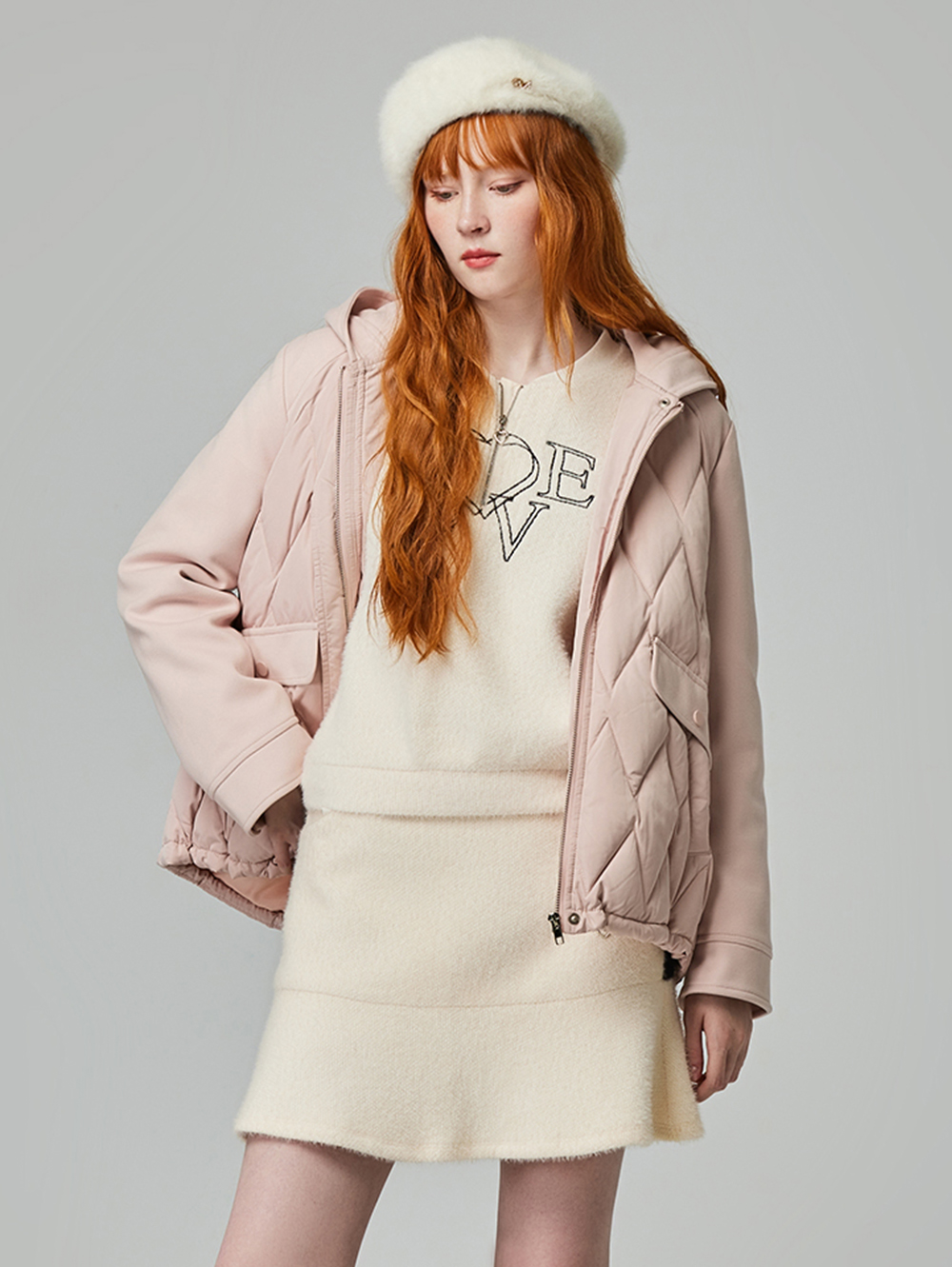 abito絨毛刺繡字母上衣