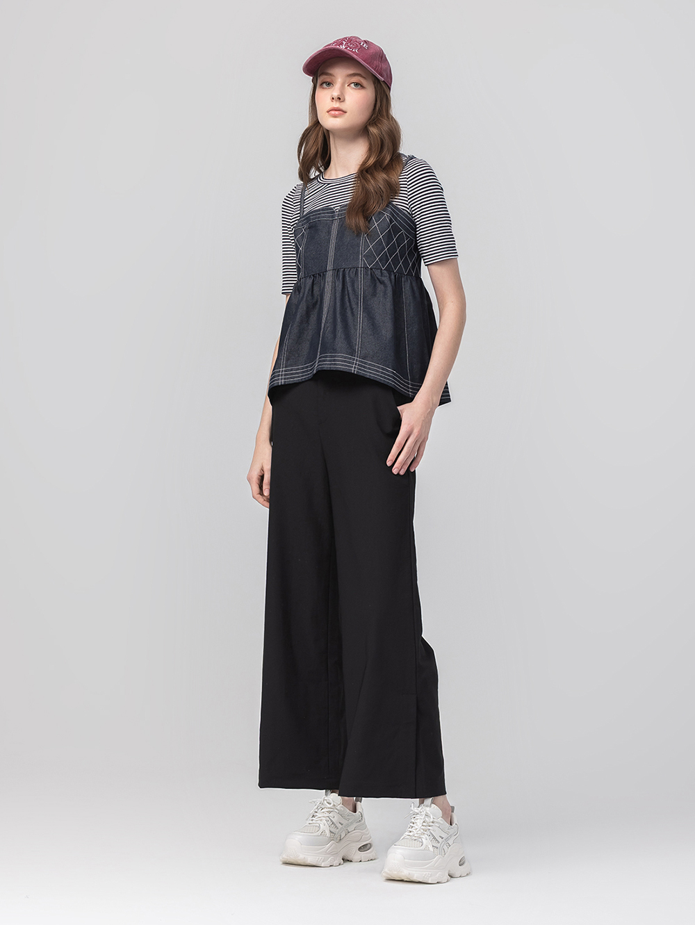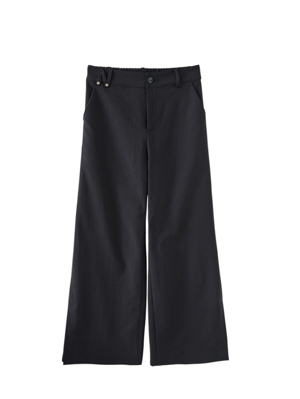 *斜邊褲管開衩設計 *仿麻面料素材,不易皺面 *後腰鬆緊帶設計,舒適好穿 *搭配同款西裝外套,日常上班穿搭