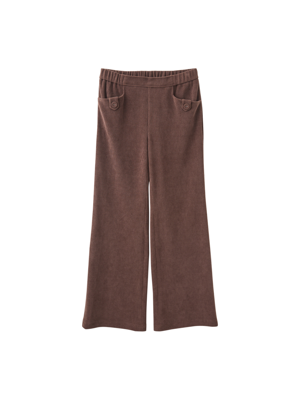 柔軟彈力條絨布料穿著輕鬆無負擔, 直筒寬版版型修飾腿部線條, 打造隨興又俐落的下身比例。
