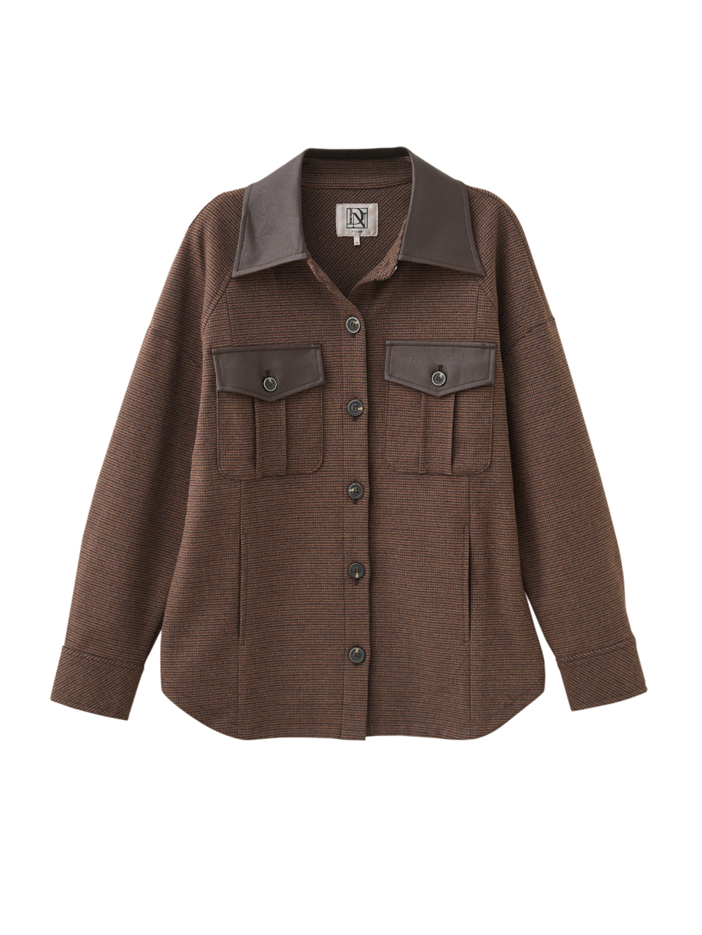 DENOVO仿皮革拼接口袋襯衫外套