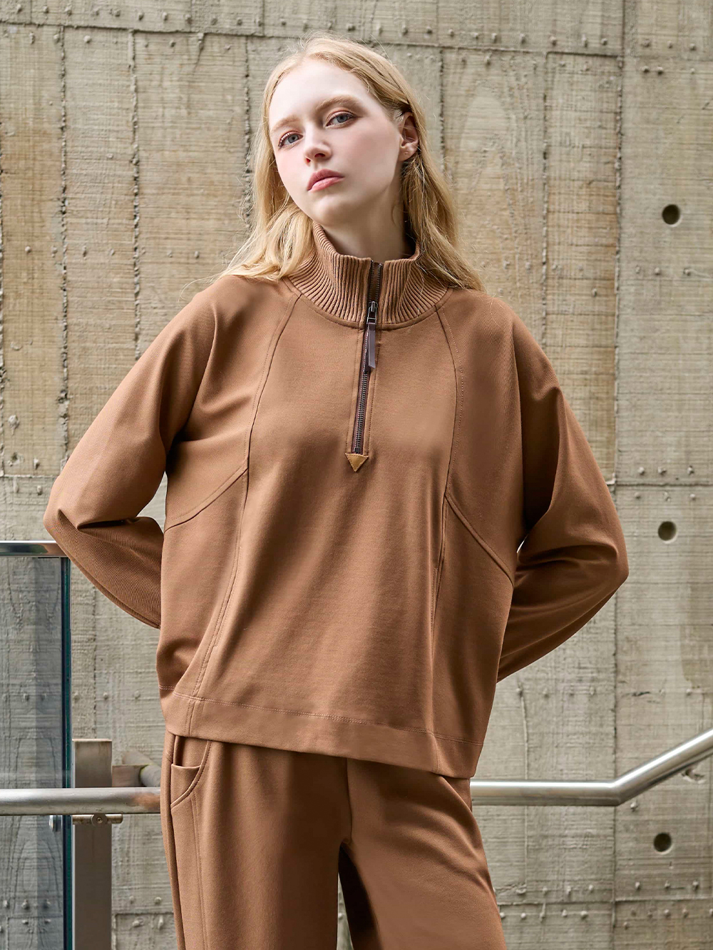 半開襟拉鍊設計搭配撞色羅紋領, 打造休閒中的時髦細節, 面料彈性親膚, 日常運動與城市散步都好搭配。