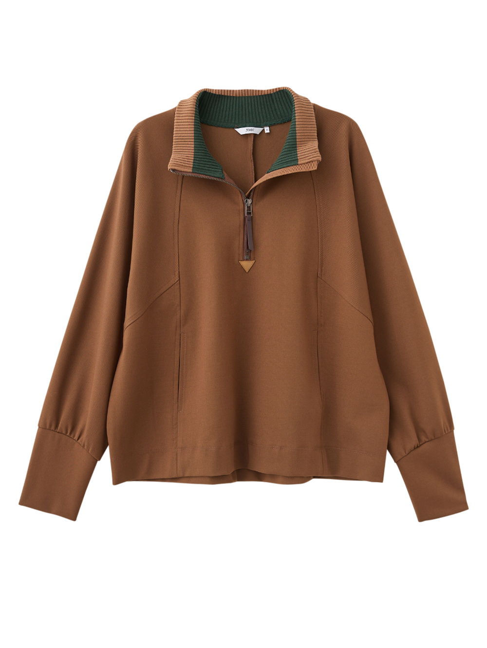 DENOVO羅紋拼接半開襟彈性上衣
